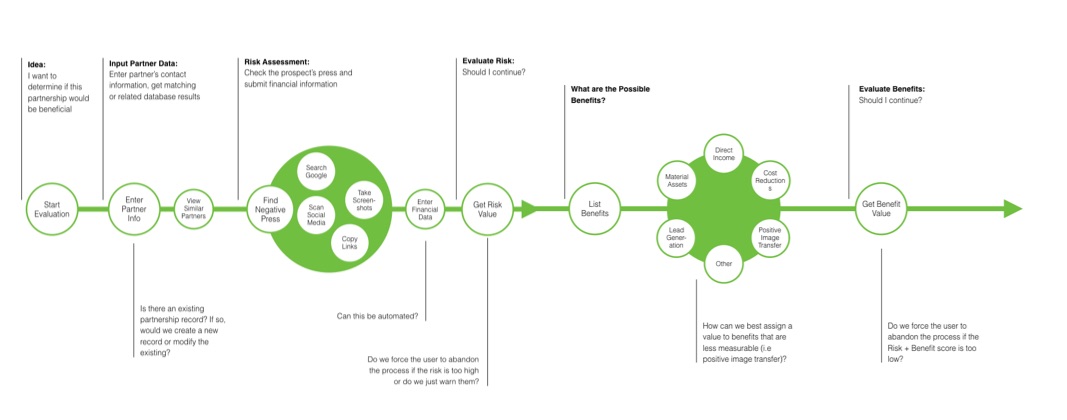 I needed to understand how a brand evaluates partners and what unique concerns the client had. To do that, I reached out to the brand managers as well as the partner managers to get valuable input from both product owners and users.